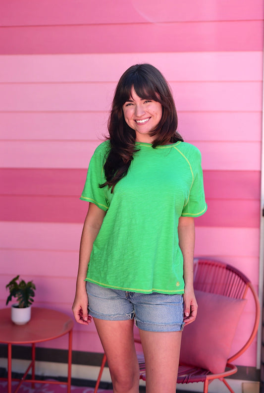 All For Fun Accent Stitch Raglan Tee - (Kiwi)