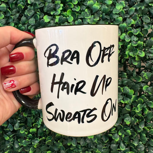 Bra Off Hair Up Sweats On Mug