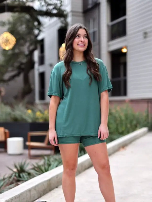 24/7 Rib Set w/Embroidered Logo - Top + Biker Shorts