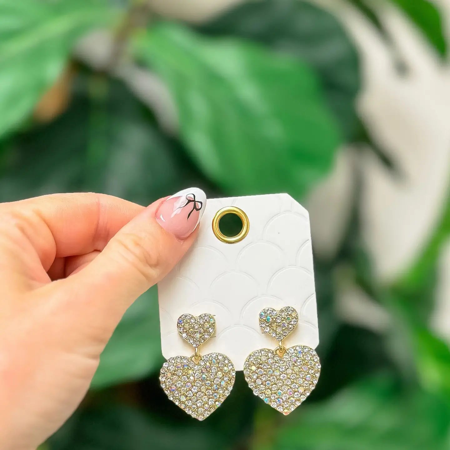 Spread love and sparkle with our Crystal Heart Drop Earrings! These beauties are perfect for Valentine's Day, featuring charming heart-shaped danglers. Show off your playful side with these quirky and fun earrings. (Love and style in one!)