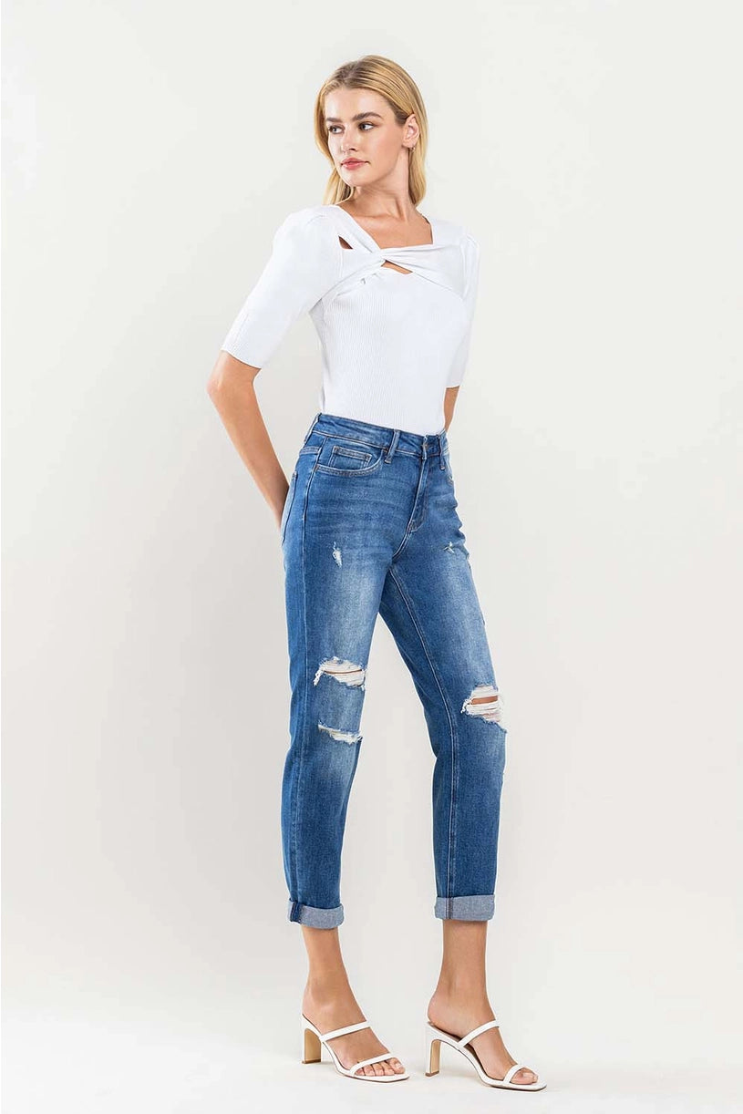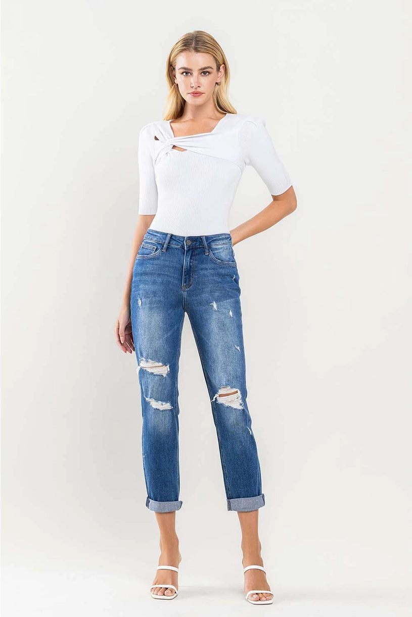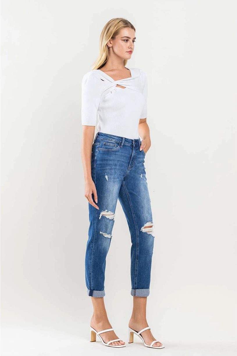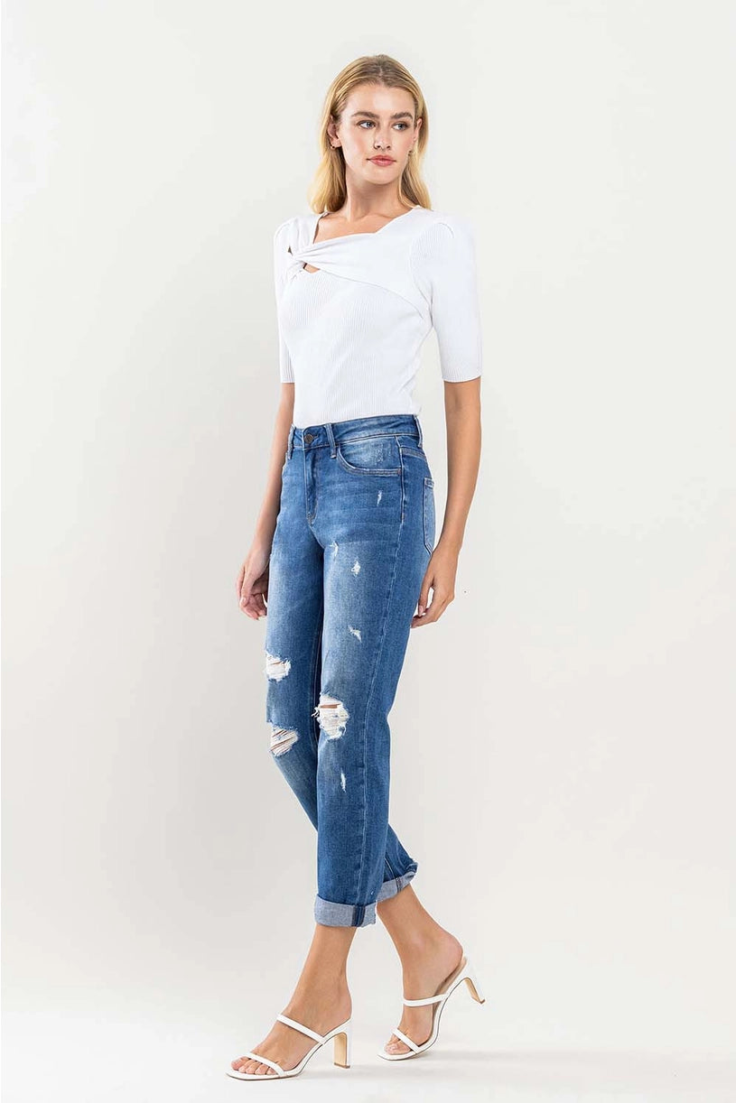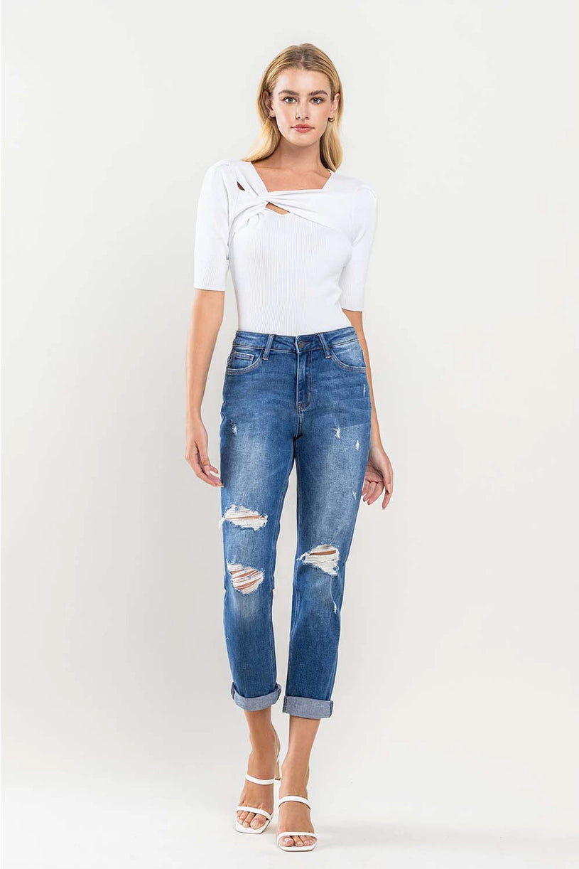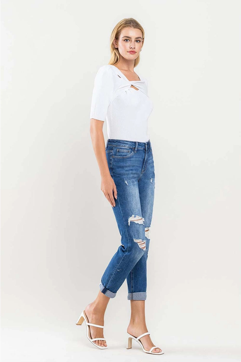 High Rise Distressed Cuffed Boyfriend Jeans