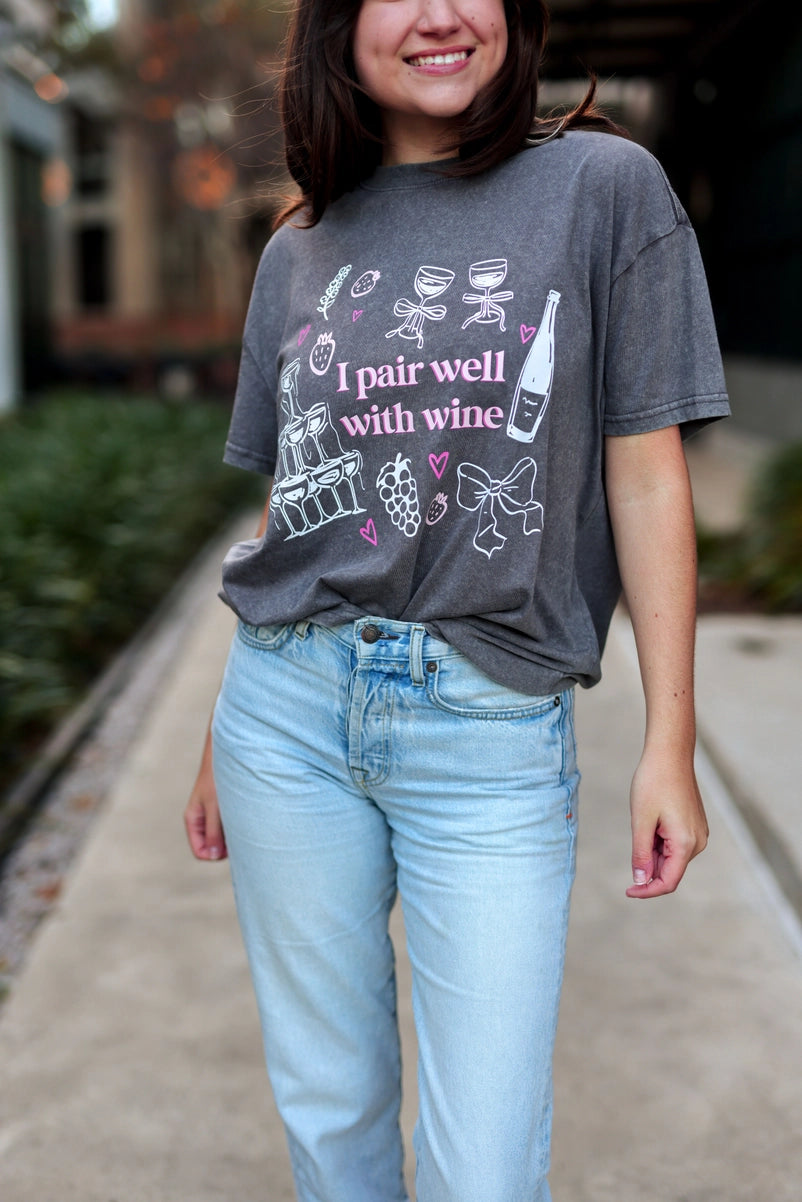 Add a splash of fun to wardrobe with our I Pair Well With Wine tee! A fun statement piece that’s sure to become a favorite and an easy on-the-go style.