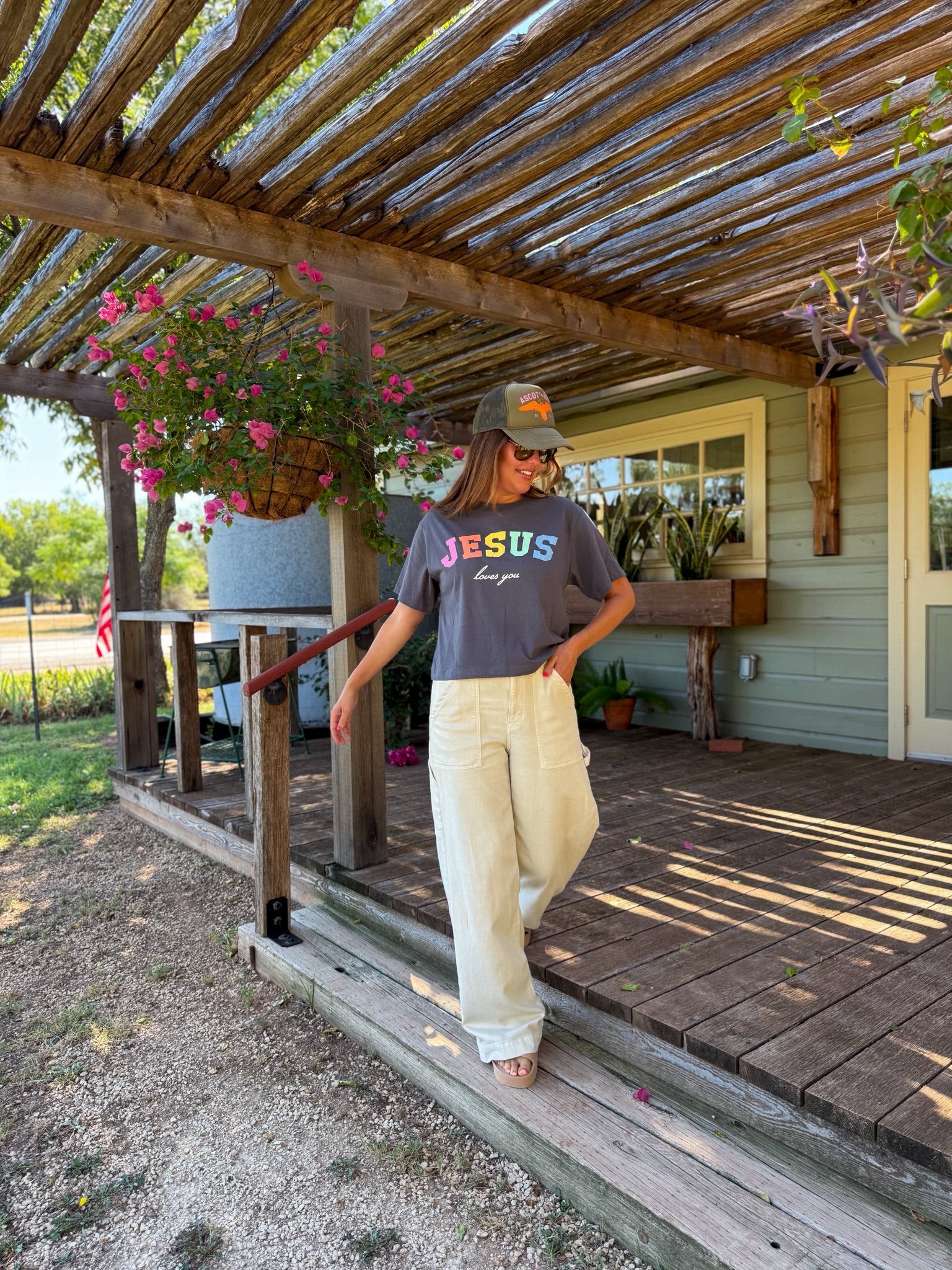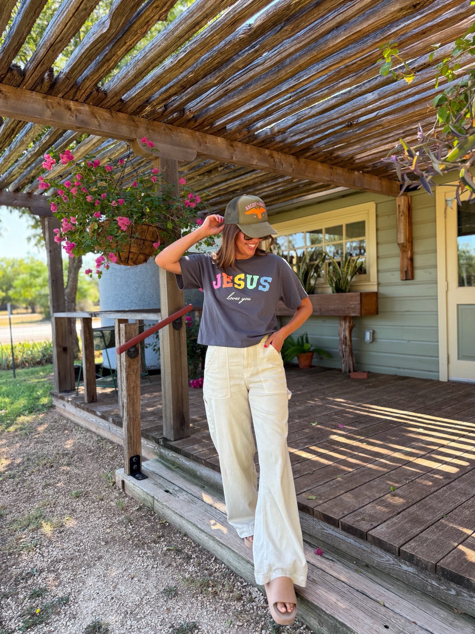 Our Jesus Loves You Graphic Tee is a feel-good favorite designed to brighten your day. Featuring bold rainbow block letters and a soft, relaxed fit, this tee pairs encouragement with comfort. Perfect for casual wear, faith gatherings, or layering under your favorite jacketâthis piece is a sweet reminder of love that never fails.