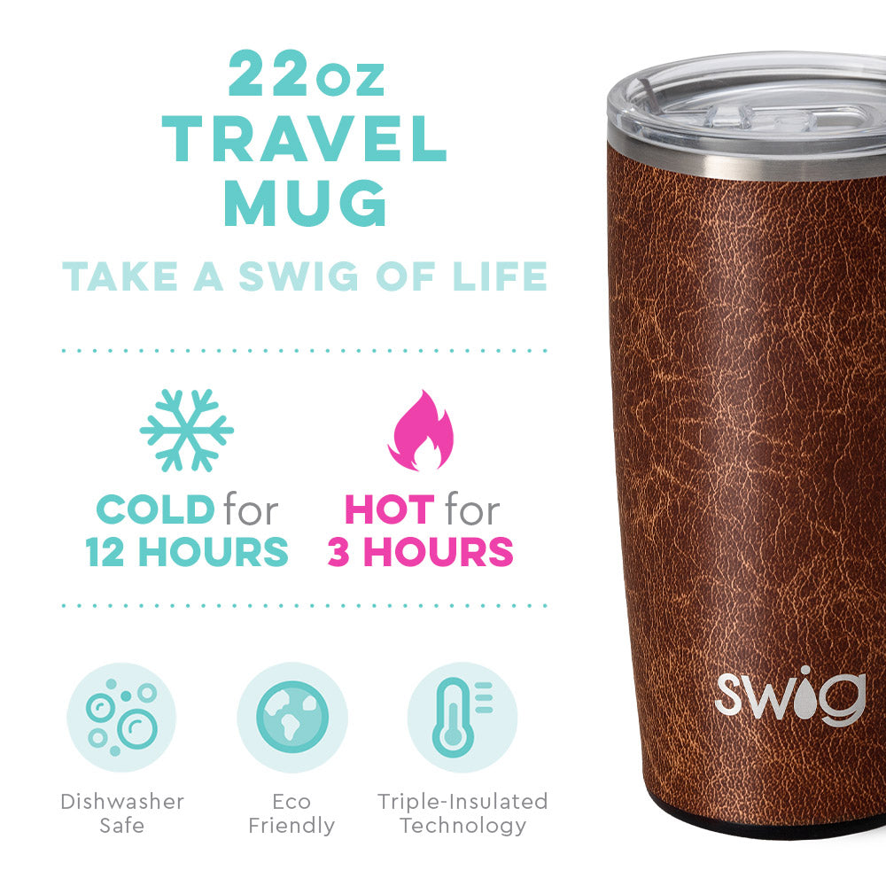 For those who love our classic mug but need a little bit more in their cup, our 22oz Travel Mug is a must-have. With more ounces to sip and a cup holder friendly profile, she's got what it takes to get through the morning commute.