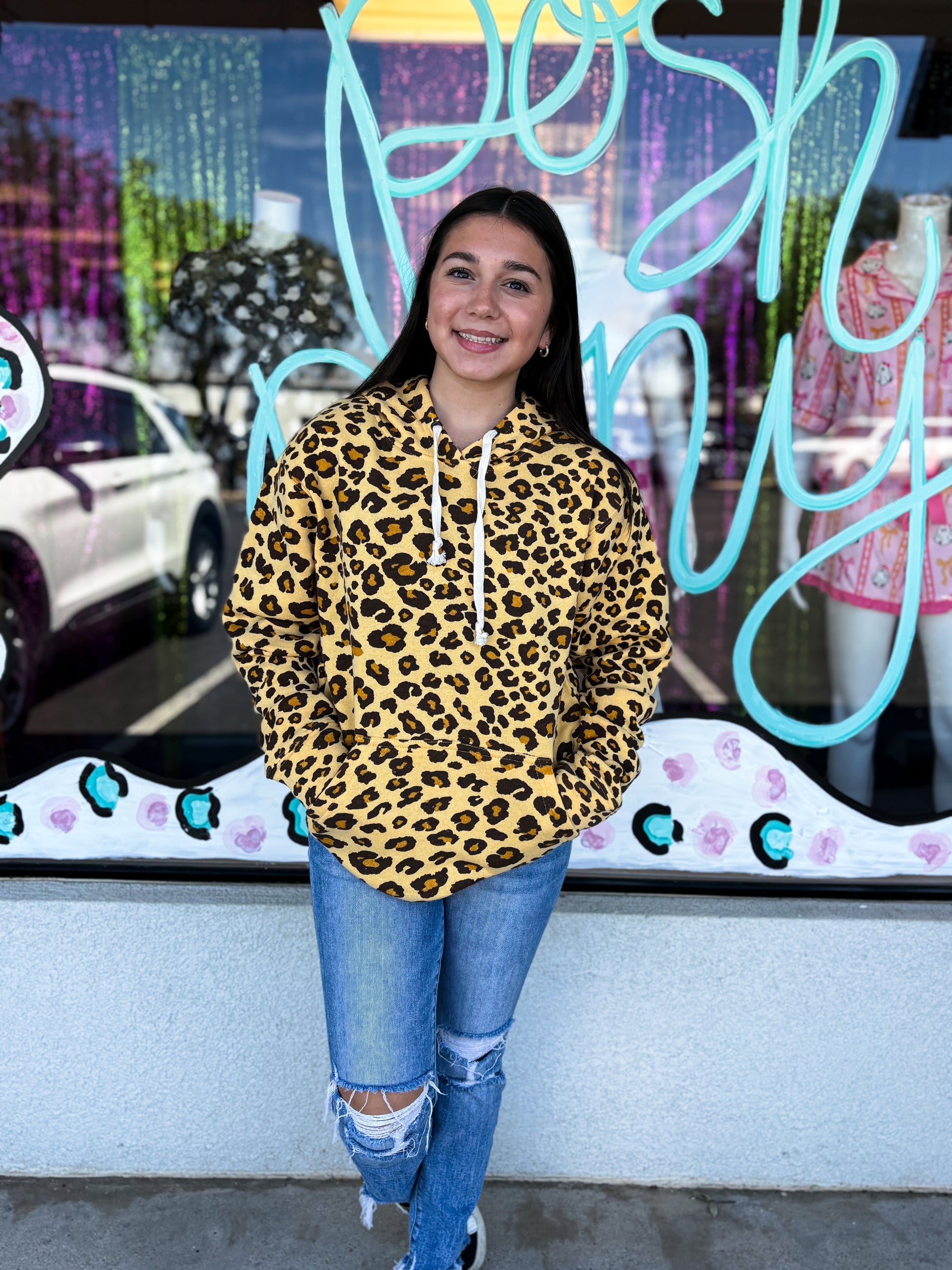 Stay cozy and chic in our Leopard Print Hoodie! đ⨠This soft, relaxed-fit pullover is a must-have for lounging, errands, or coffee runs. Featuring bold leopard print, a roomy front pocket, and adjustable drawstrings, it pairs perfectly with biker shorts or leggings for that effortless âon-the-goâ vibe. A closet essential for comfort and style!