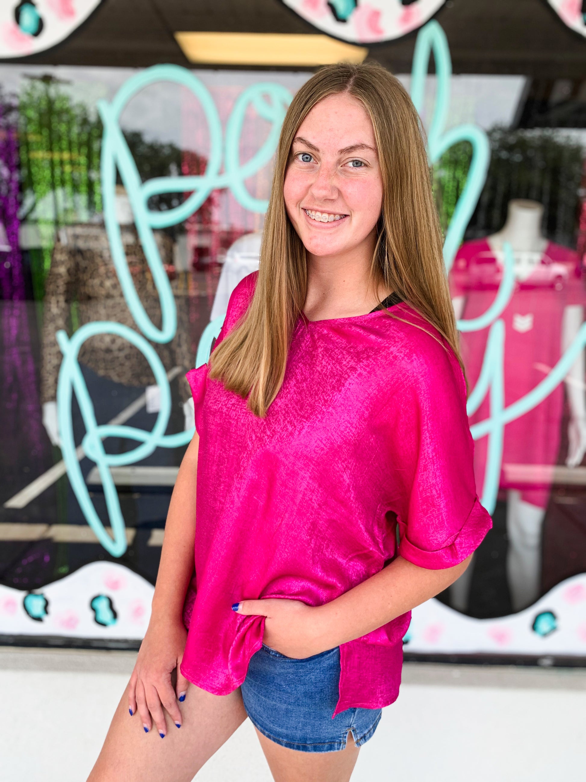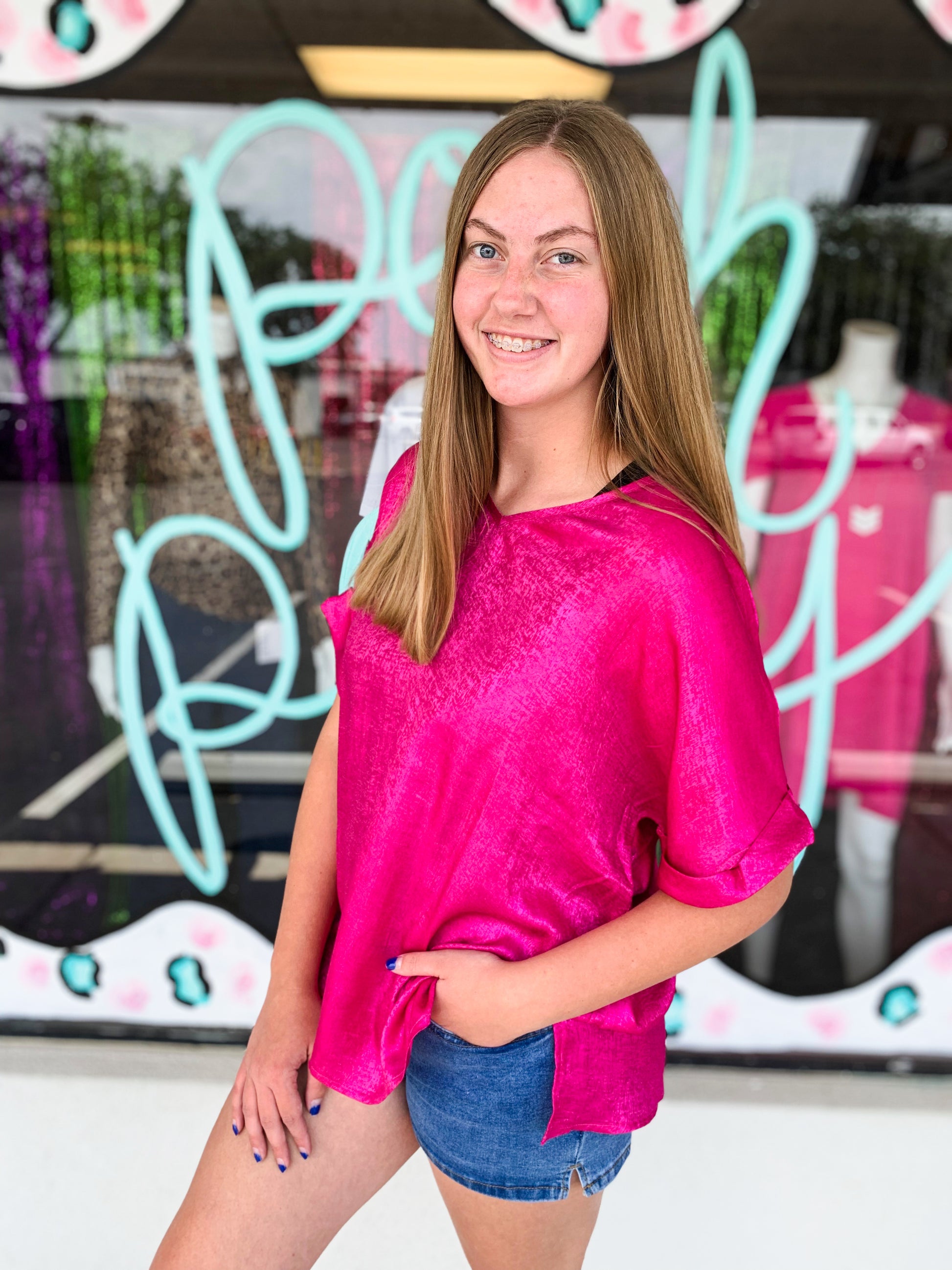 Dress up or down in this comfortable Metallic Blouse! 100%POLYESTER