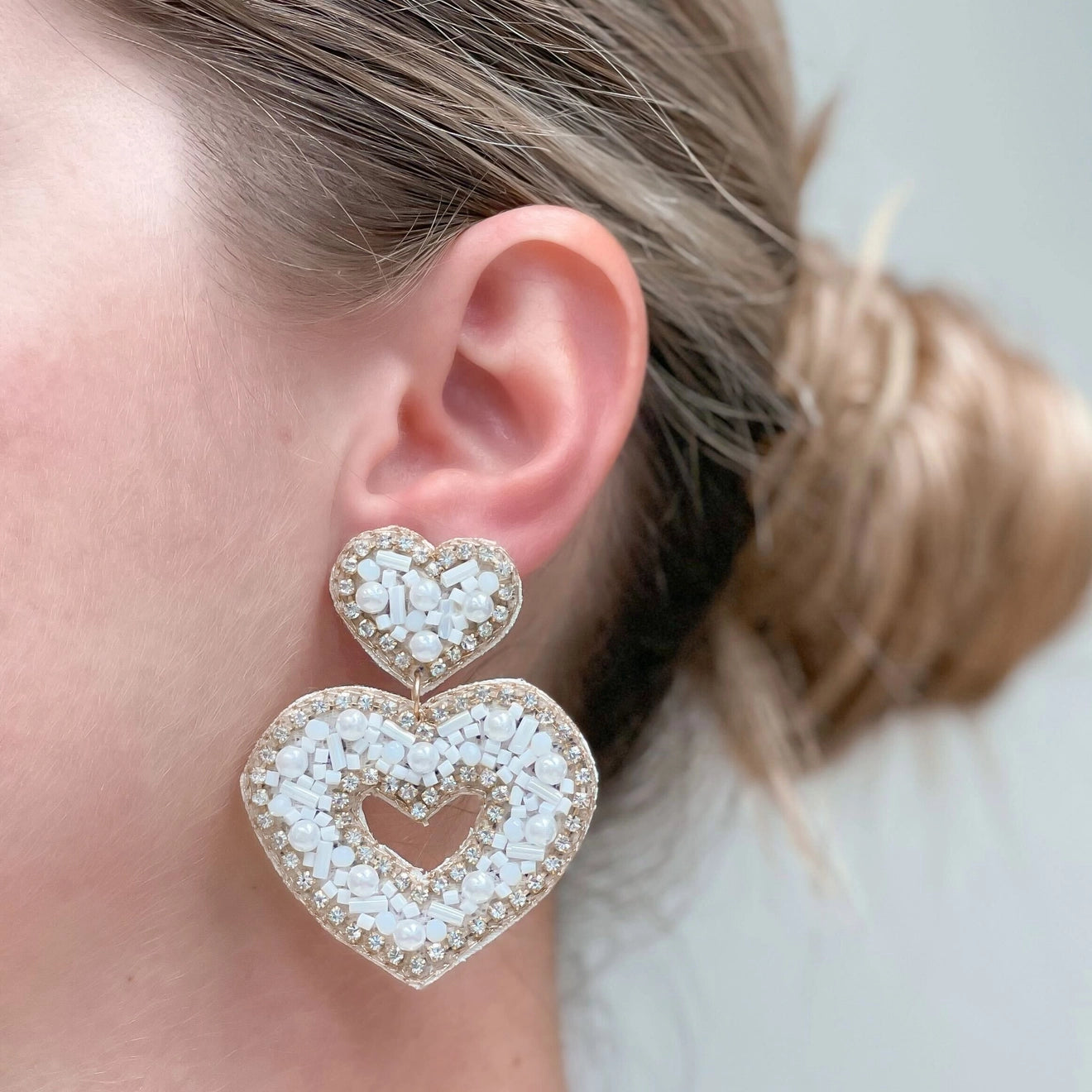 Sparkly Beaded Double Heart Earring