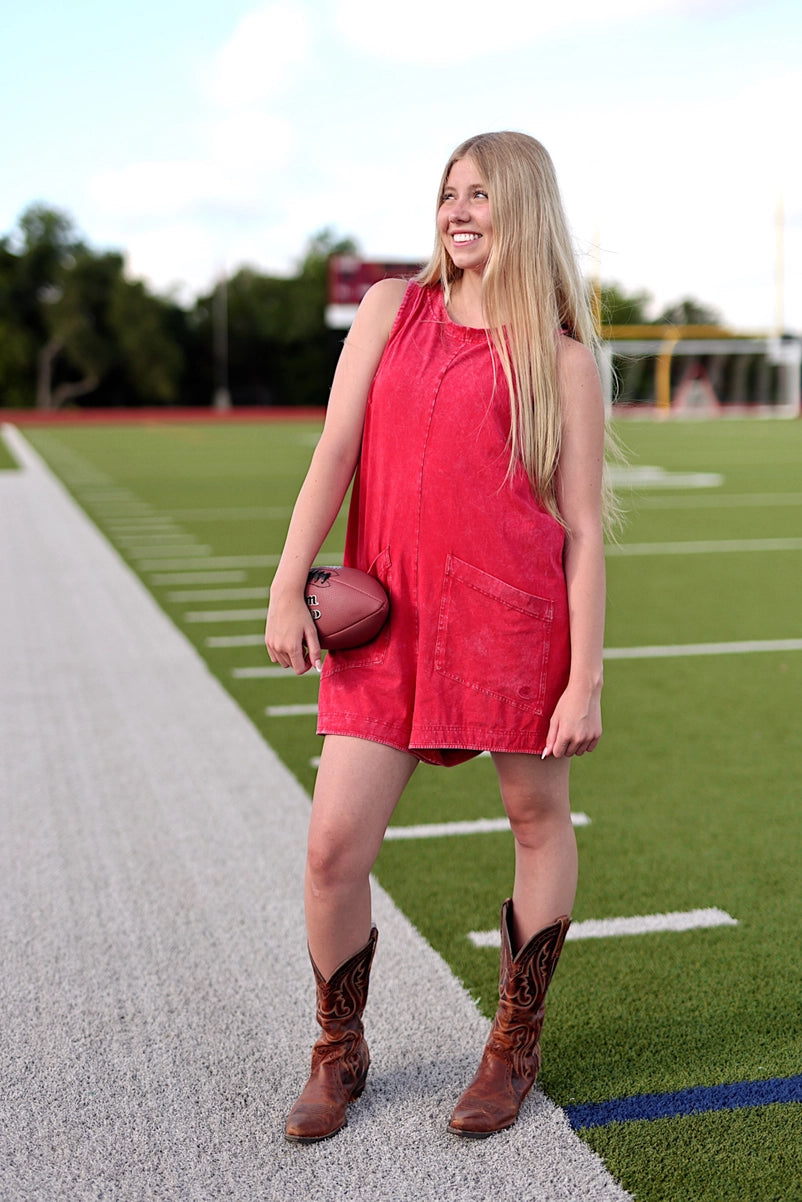 Tailgate Romper - Mineral Wash Red