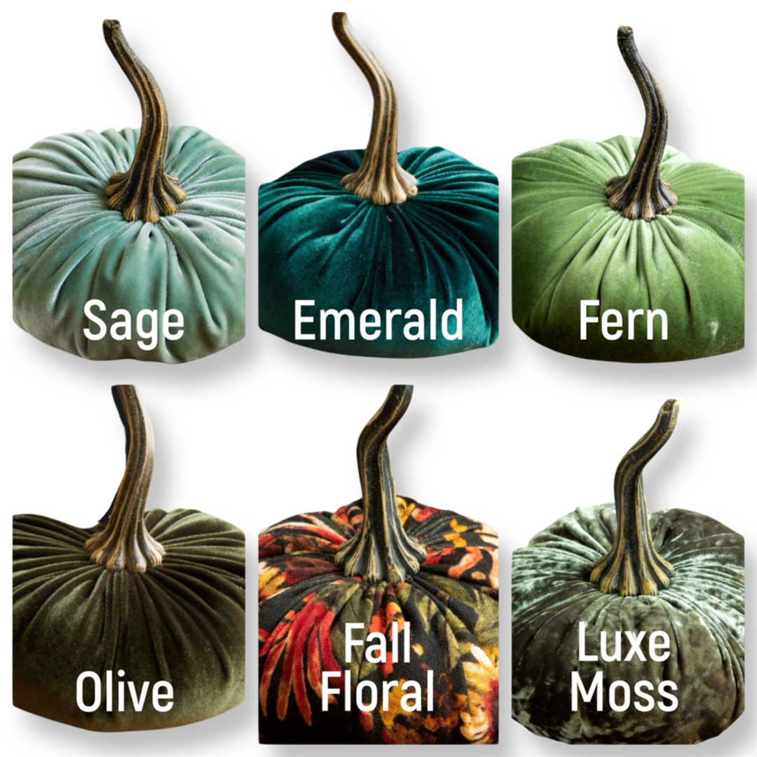 Handmade velvet pumpkins add sophistication to any home. The stem is resin, realistic, and very durable.