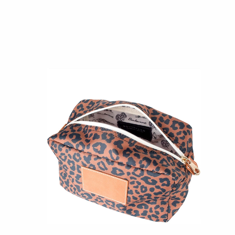 Winnie Large Utility Pouch in Leopard print embossed with MAMA in Gold on leather patch