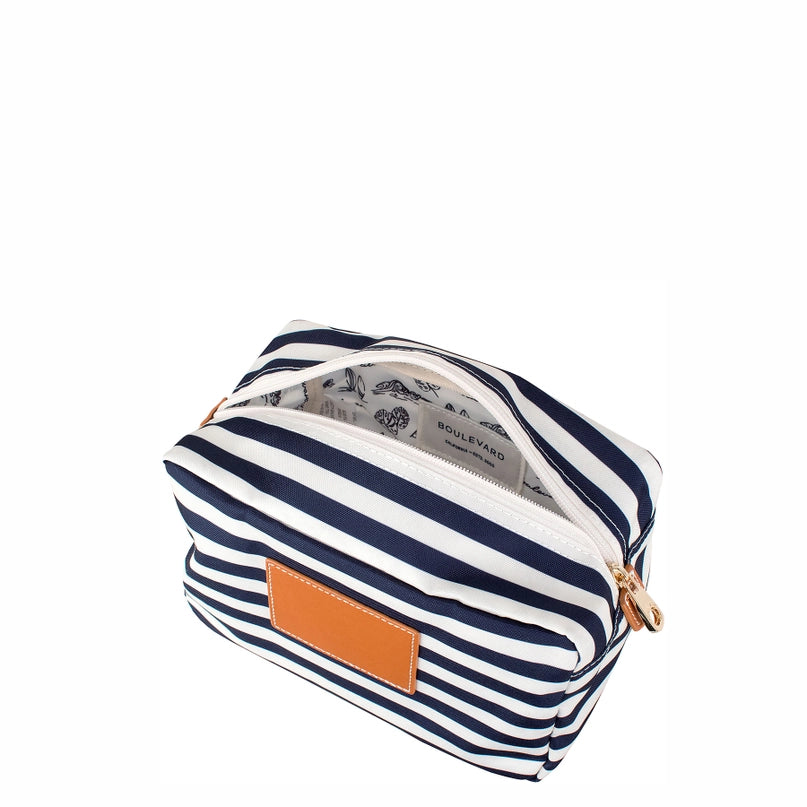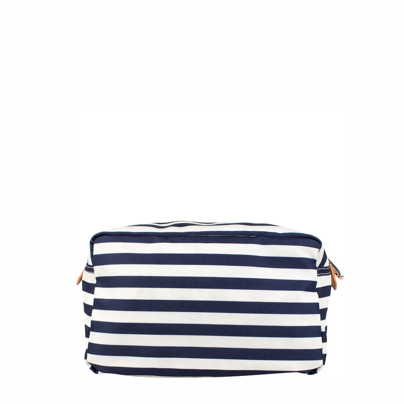 Winnie Large Utility Pouch in NAVY STRIPE embossed with MAMA in Gold on leather patch